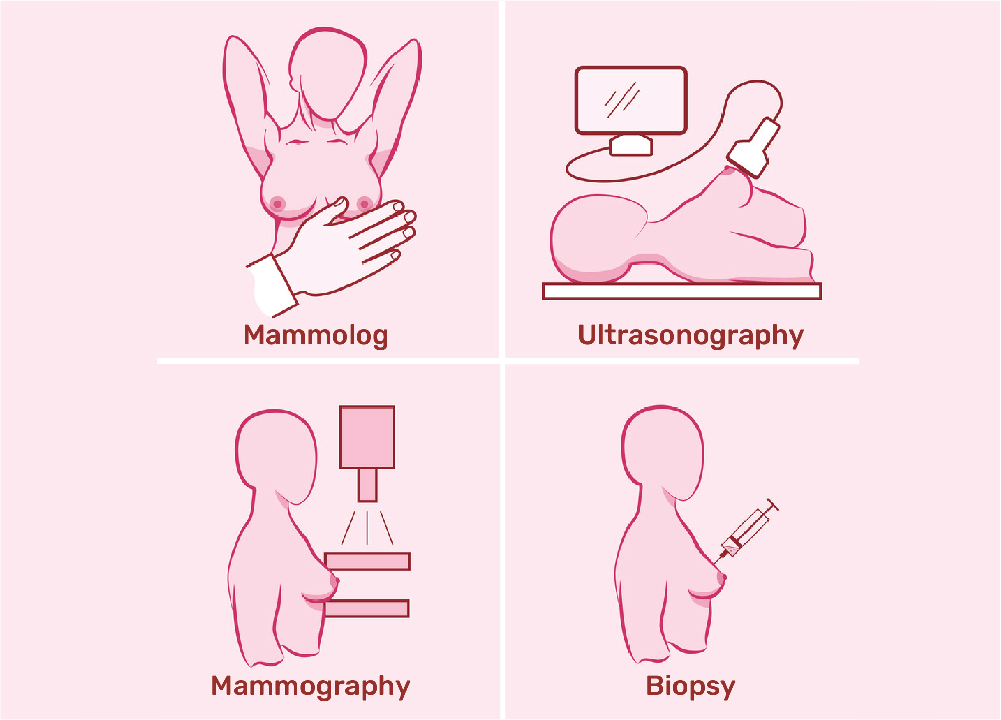 Initial detection of breast cancer starts with a physical examination, mammography and ultrasound scan. In certain cases, breast magnetic resonance imaging (MRI) will also be performed. If a tumour is identified, a biopsy will be taken to assess the cancer before any treatment is planned.
