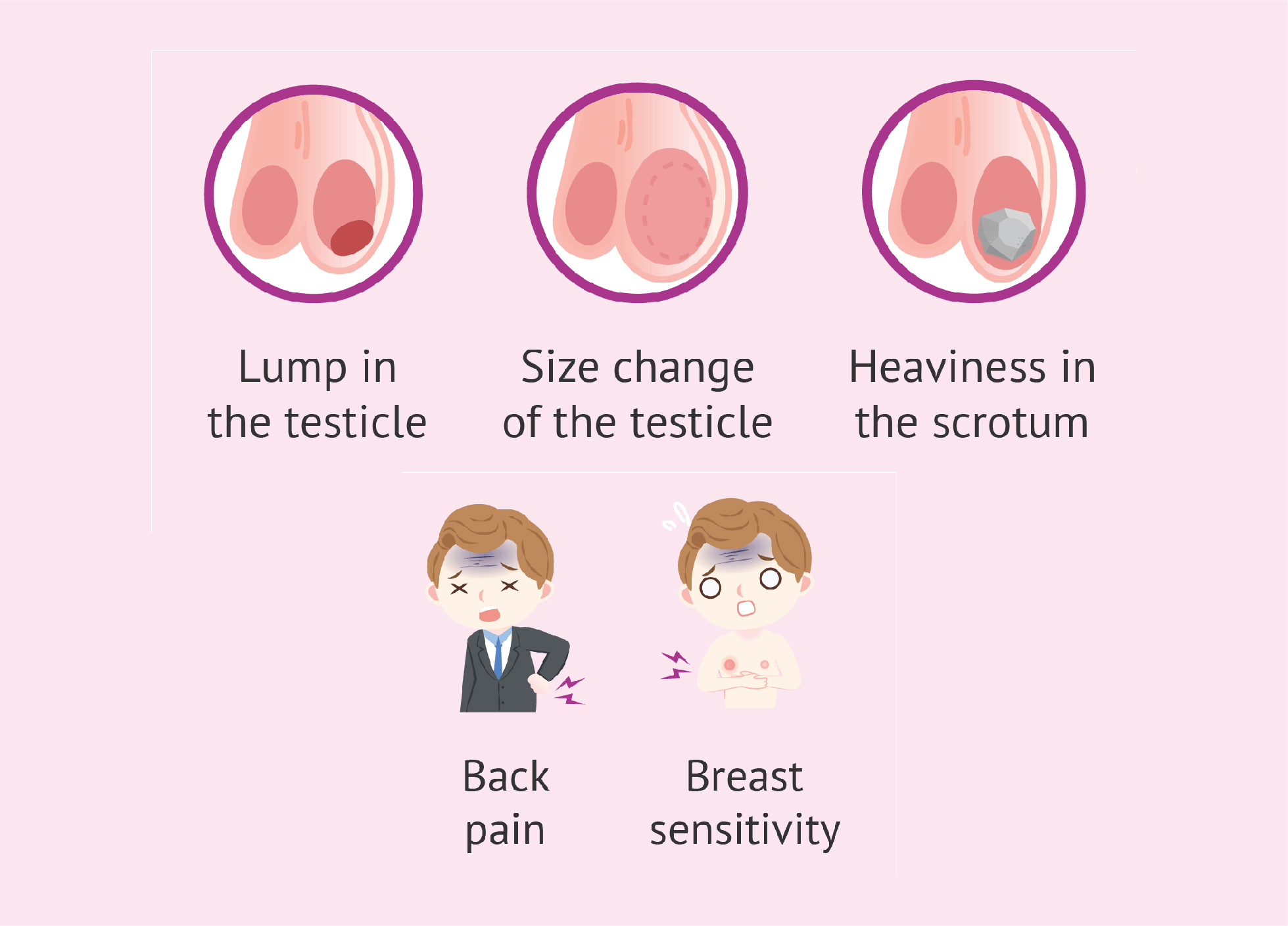Some men show no symptoms when diagnosed with testicular cancer. When symptoms appear, they include: