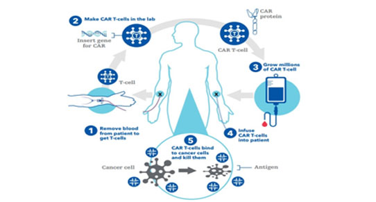 Before receiving the CAR T cells, the patient receives chemotherapy to help the body prepare for the impending CAR T cells. Once infused into the patient's bloodstream, the CAR T cells multiply and begin recognizing and attacking cancer cells that express the targeted antigen. CAR T-cells may remain in the body for months after the infusion is complete, resulting in long-term remissions in some patients with blood cancer. CAR-T cells are currently approved for use in young patients with relapsed B-cell acute leukemia and relapsed lymphomas.