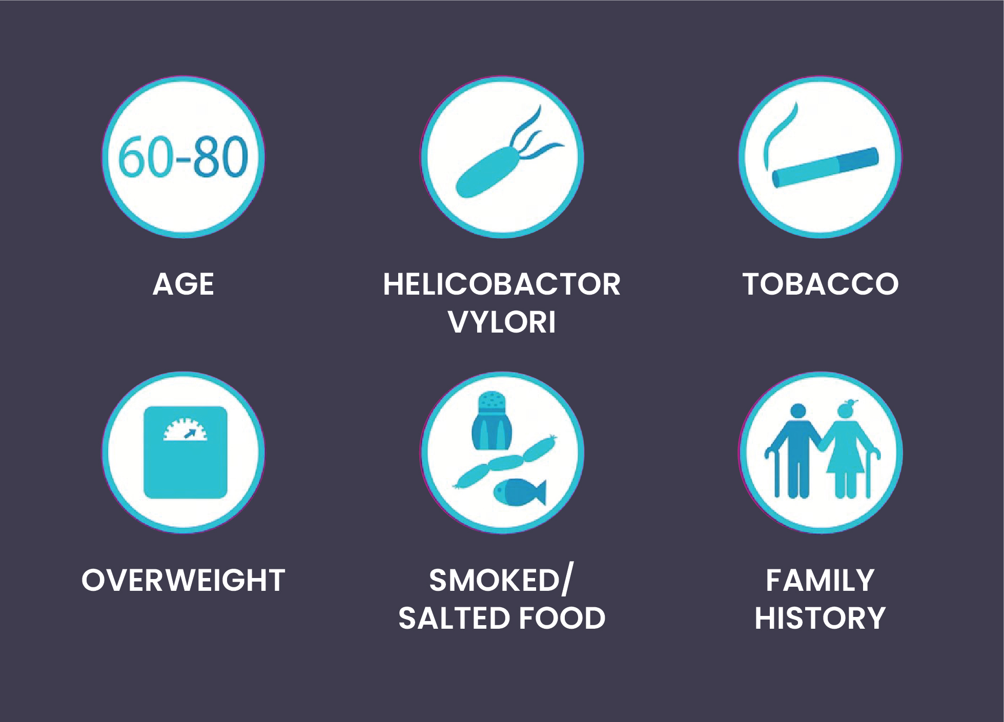The exact cause for stomach cancer is still unknown but few things that can raise the risk for the disease. One of the major risk factors is – H. pylori bacterial infections (a common stomach infection that can sometimes lead to ulcers).